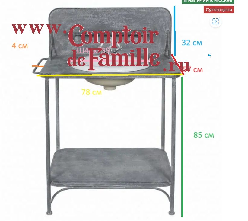 ТУМБА С РАКОВИНОЙ 82Х56Х118 СМ., МЕТАЛЛ, ФАРФОР, COTE TABLE